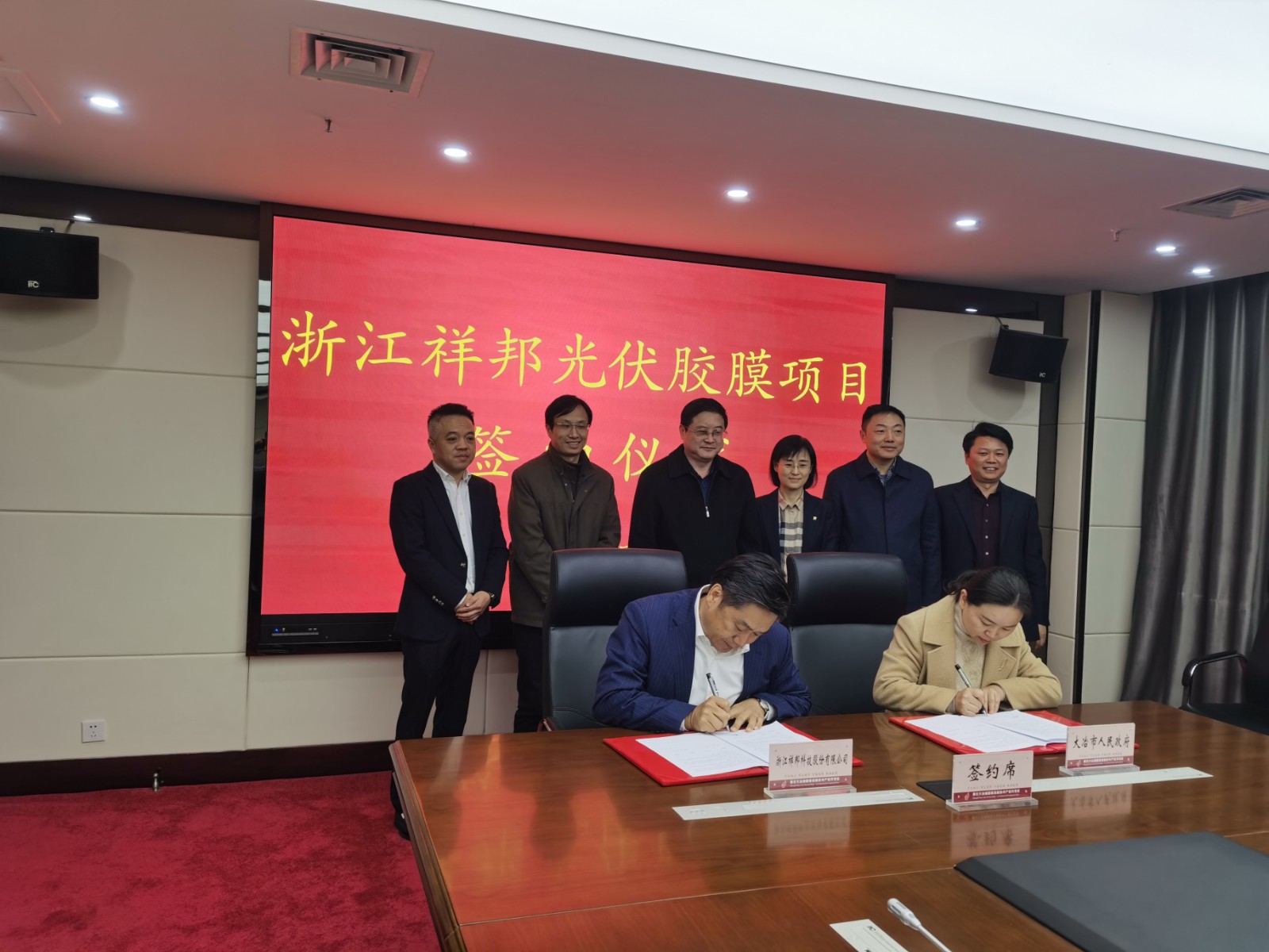 祥邦科技舉行湖北大冶市光伏膠膜項目簽約儀式